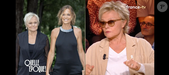 Actuellement en promotion pour ce long-métrage, Muriel Robin et Louise Bourgoin étaient les invitées de Léa Salamé dans Quelle époque !, sur France 2, samedi 20 décembre 2025, pour la dernière émission de l'année. Au cours de l'interview, Léa Salamé a voulu connaître les secrets de la longévité du couple formé depuis vingt ans par Muriel Robin et Anne Le Nen. L'humoriste et actrice qui a fêté en août dernier ses 70 ans lui a d'abord répondu : "On parle beaucoup, on n'est pas parties tout de suite à la première enguelade, peut-être on aurait pu... On fait en sorte que la relation soit de plus en plus intéressante. On prend des décisions, on prend la décision de ne pas se disputer par exemple. Les choses on peut les décider en fait", a-t-il confié, ajoutant : "Pour décider de faire une vie meilleure, d'être meilleures et de faire une vie meilleure. On y arrive et du coup ça devient très très intéressant, très agréable et la relation, on n'a pas du tout envie qu'elle s'arrête, au contraire." Muriel Robin en est certaine, l'amour qu'elle partage avec sa femme à qui elle est mariée de depuis 2021 est fait pour durer encore de nombreuses années...